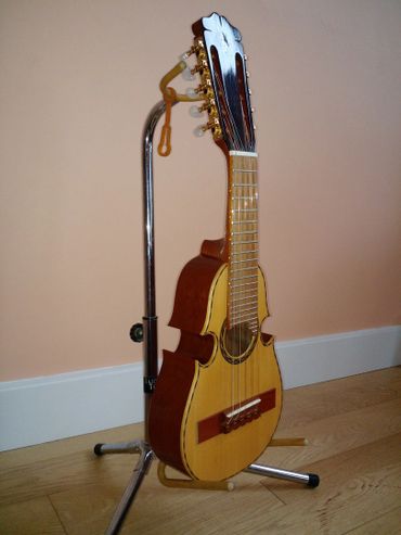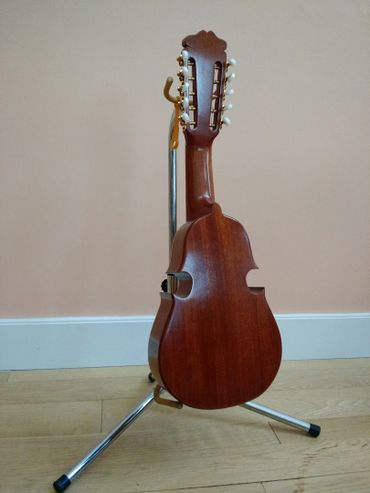 For the demands of professional musicians, José makes a modern electrically-amplified cuatro that uses state-of-the-art transducing equipment.